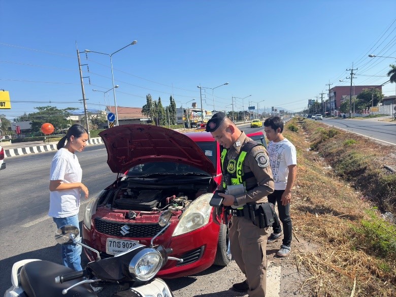 ช่วยเหลือรถประชาชนแบตเตอรี่หมด 29/12/67 25 มีนาคม 2568 โดย admin / ข่าวบริการประชาชน วันที่ 29 ธ.ค.67 เวลา 14.20น. ส.ทล.2 กก.4 บก.ทล.(ขอนแก่น)หน่วยบริการประชาชนตำรวจทางหลวงชุมแพรถวิทยุ 4205 ด.ต.กิตติกร โมหา พลขับ ด.ต.ฉัตรชัย หงส์สาม พงว. ออกตรวจจราจรในพื้นที่ ทล.201 พบรถยนต์นั่งส่วนบุคคลยี่ห้อชูชุกิหมายเลขทะเบียน 7กธ-9026 กทม.จอดเสียอยู่บริเวณ ทล.201กม.224 ต.ไชยสอ อ.ชุมแพ จ.ขอนแก่น จึงเข้าไปสอบถามและได้ช่วยเหลือโดยอุปกรณ์ประจำรถวิทยุ พ่วงแบตเตอรี่จนรถของประชาชนสามารถเดินทางต่อไปได้